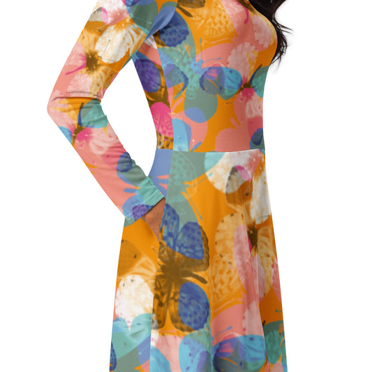 Frozen Fred Designer All-over print long sleeve midi dress