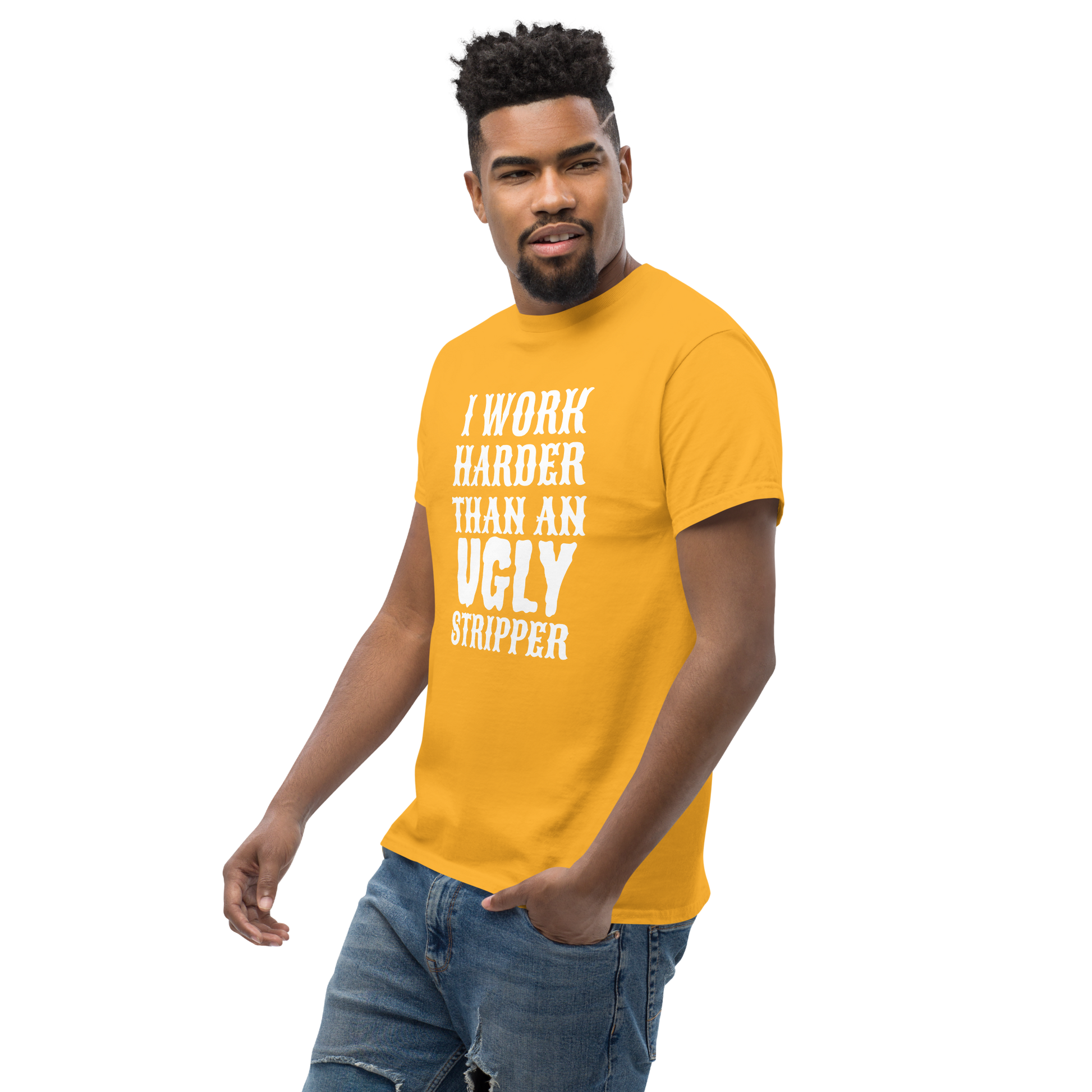 The 100% cotton men's classic tee will help you land a more structured look. It sits nicely, maintains sharp lines around the edges, and goes perfectly with layered streetwear outfits. Plus, it's extra trendy now!